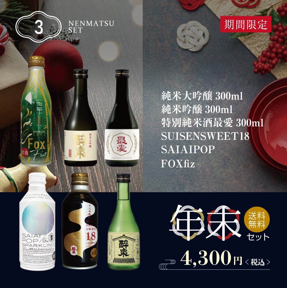 300ml純米大吟醸・300ml純米吟醸・特別純米酒最愛SUISENSWEET18・SAIAIPOP・FOXfiz